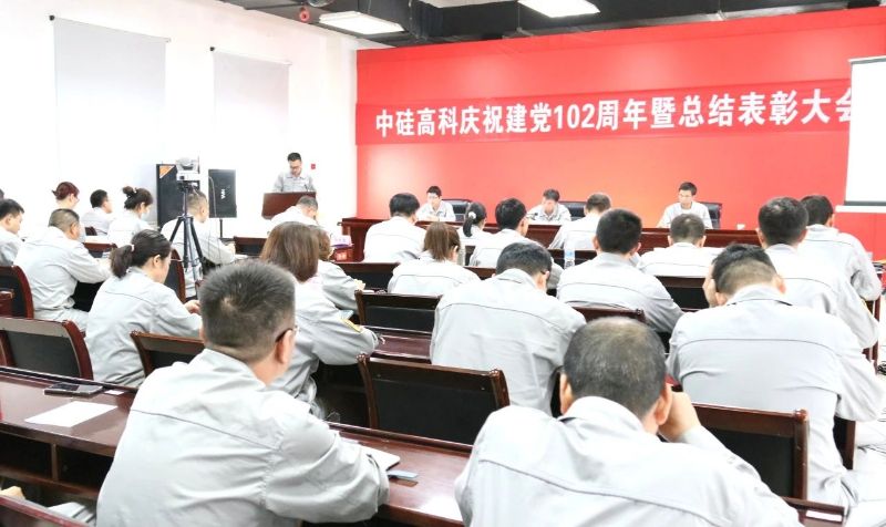 2023年6月28日上午,中硅高科在2#辦公樓三樓會議室召開慶祝建黨102周年暨總結(jié)表彰大會。會議由副董事長、黨委副書記、總經(jīng)理萬燁主持。董事長張合文作講話,黨委書記侯曉東作總結(jié)報告。